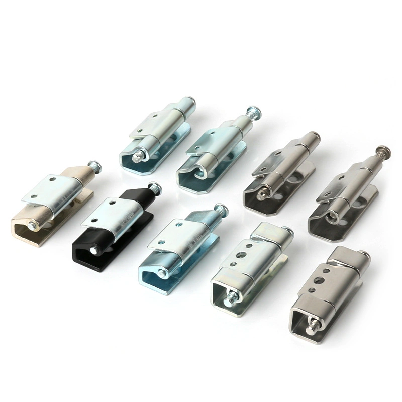 Hængslerne fås i zinklegering, jern og 304 rustfrit stål. Zinklegeringsversionen fås i sort, lys krom og nikkelbelagt finish til letvægts- og korrosionsmodstand, jernmaterialet galvaniseres til rustforebyggelse, og 304 rustfrit stålversion opretholder den originale farvefinish for god modstand mod oxidation, syrer og alkalis til Harsh Environments.