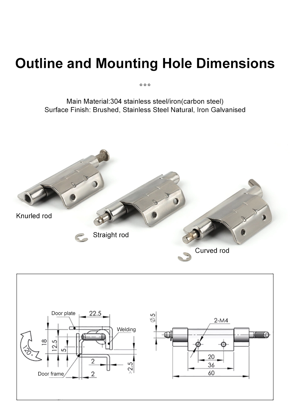 CL248 distributionskort drejehængsel tilbydes i flere konfigurationer. Mulighederne er tilgængelige med lige stang, bøjet stang og riflet stang. Hvert distributionskort drejeligt hængsel vejer omkring 49–50 g med små variationer efter model. Disse kombinationer gør det muligt for skabsbyggere at matche hængslet med forskellige paneltykkelser og monteringspositioner, samtidig med at drejefunktionen holdes stabil.