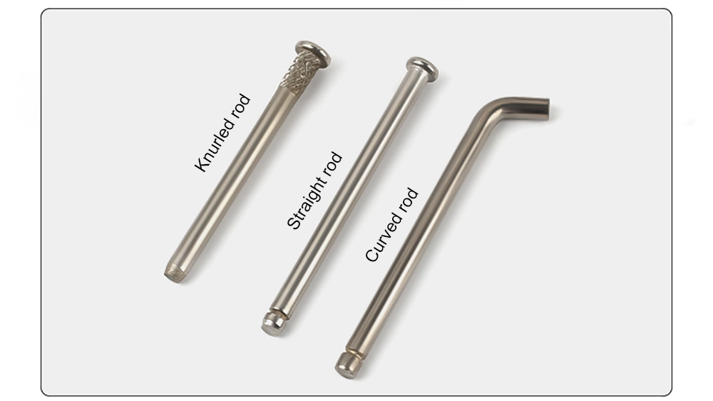 Fordelerpladens drejehængsel fås med lige stang, bøjet stang og riflet stang.